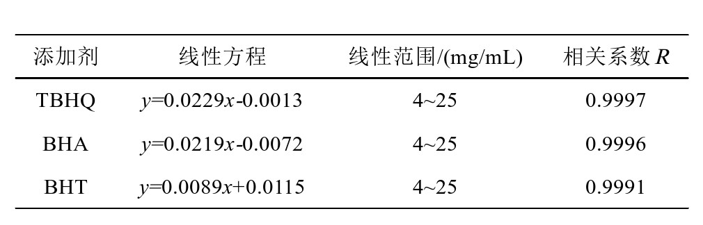 表3 食品添加剂的线性方程