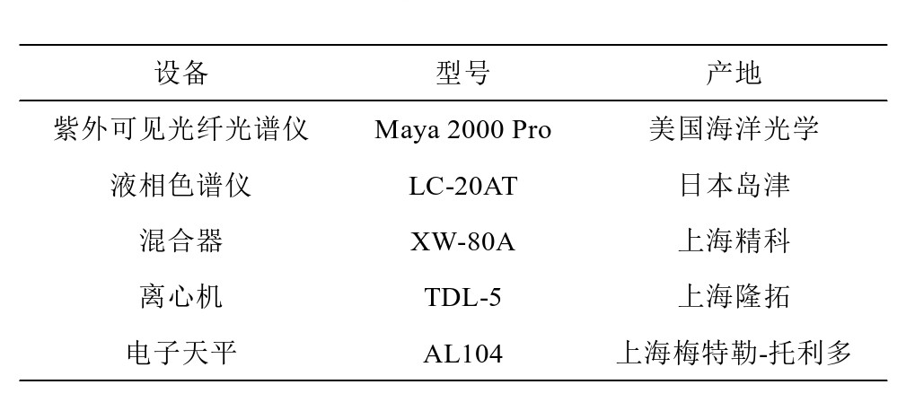 实验使用到的仪器和设备信息如表1所示。