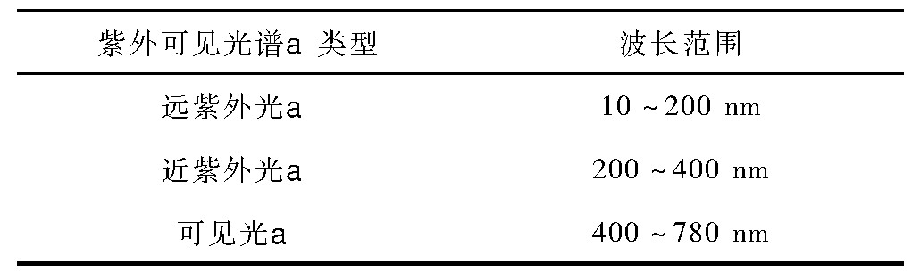 关于紫外光谱法在水质化学需氧量检测中应用经历了漫长的发展阶段,从早期的单波纹分析研究到目前的多波长分析研究。它的产生主要是由于分析运动时产生的能级跃迁[2]。在整个紫外可见光谱区域内,波长的范围为10~780nm,具体类别划分如表1所示。其中,水质检测的紫外可见光区波长范围为200~780 nm之间,主要是指近紫外光区与可见光谱区。