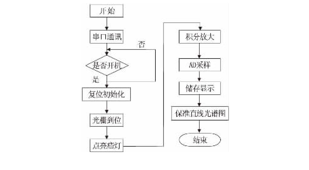 在整个检测仪器系统中,软件部分是核心,可实现对光谱数据的采集到输出控制等[4]。为了有效检测水样中化学需氧量,在检测过程中必要按照流程执行,具体如图4所示。在检测时,上电之后上位机监控软件发出指令,之后控制系统接收质量,疝灯发出的复合光进入到开放流通池内,被吸收的光信号转化为相应的电信号,再通过无线传输模块传输到上位机,待处理后得出水质化学需氧量。该仪器波长范围为200~700 nm之间,波长误差、重复性误差等指标符合国家规定要求[5]。由于该检测系统中有无线传输接口等设备,可将实时监测的数据传输到上级管理部门,大大提高了水样监测的速度与力度。