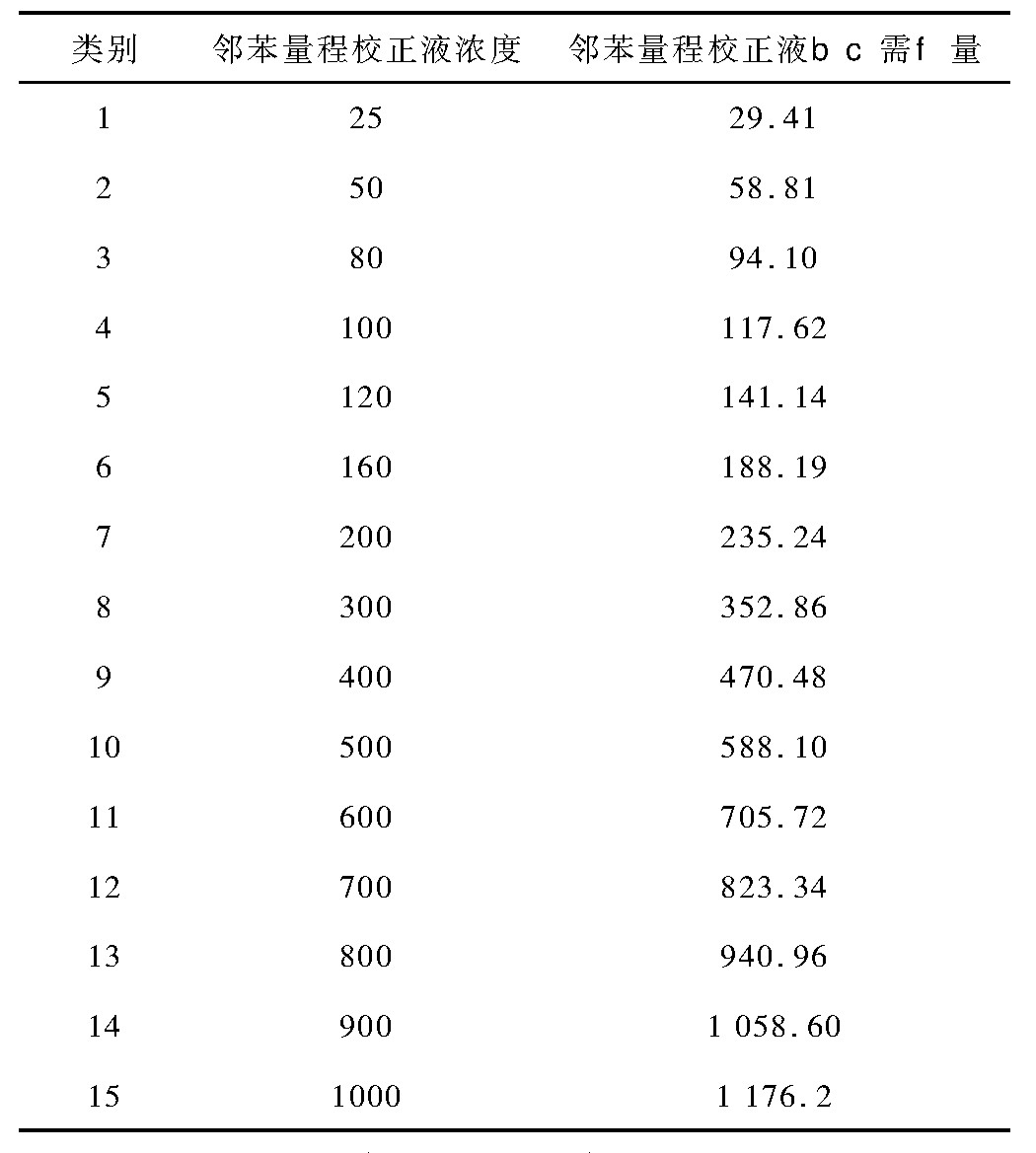 表2 15种邻苯量程校正液浓度与化学需氧量数值mg/L