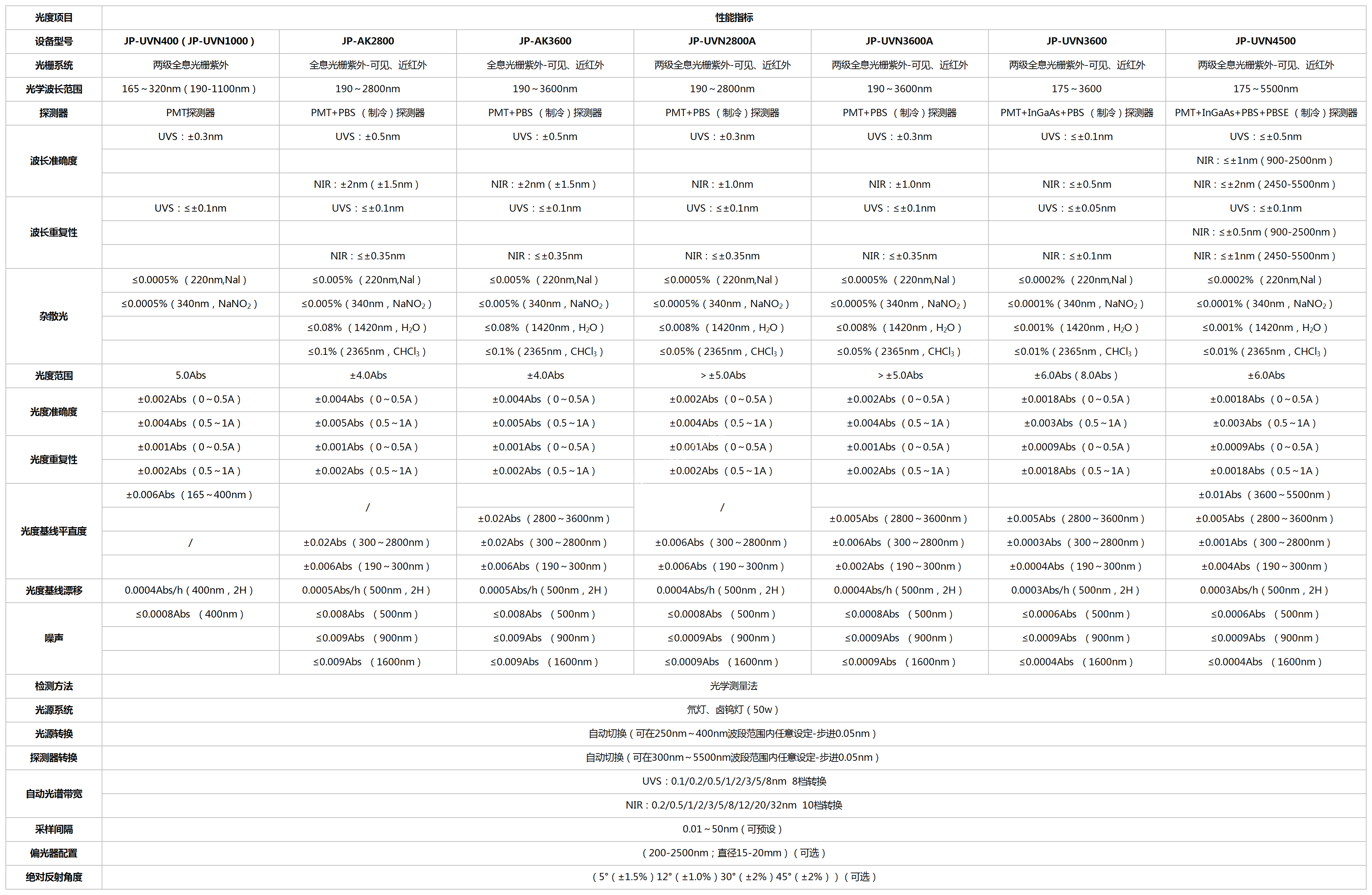 紫外-可见-近红外分光光度计(JP-UVN400/JP-AK2800/JP-AK3600/JP-UVN2800A/ JP-UVN3600A/JP-UVN3600/JP-UVN4500)
