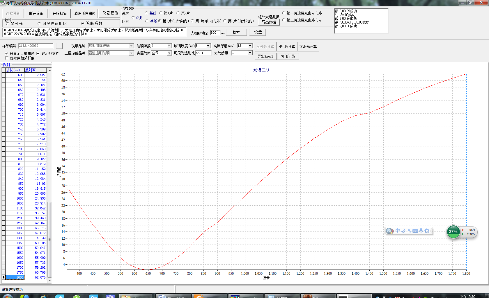 透过率、反射率、光谱能量、吸光度 |