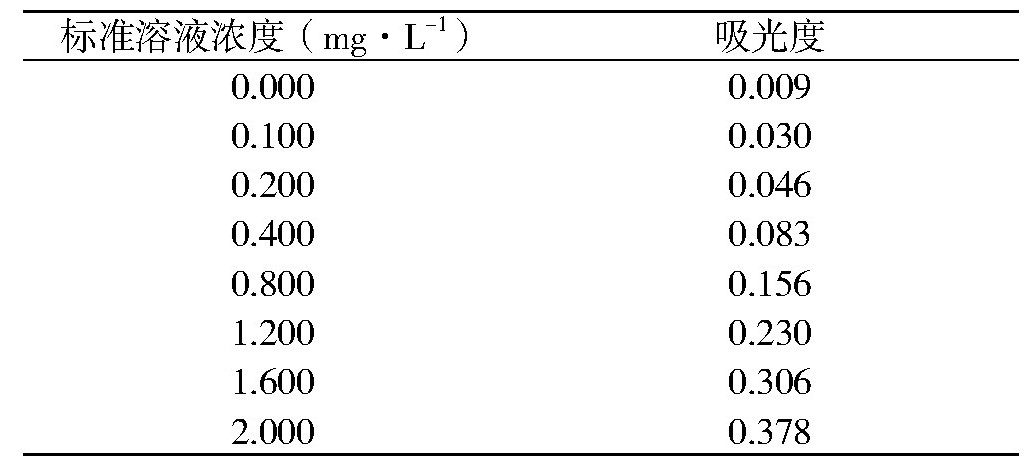 使用岛津UV-2600紫外分光光度计在特定波长(按照标准方法确定)下测定各标准溶液的吸光度。具体实验数据如表1所示。