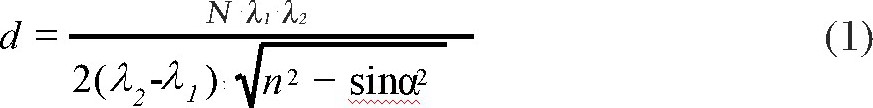 其中, d为膜厚 (nm) ;N为计算范围间的峰数;λ1为起始波长;λ2为结束波长;n为折射率;α为去样品方向的入射角。